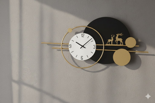 ساعت دیواری مدرن فلزی و چوبی لاکچری دو رنگ H544