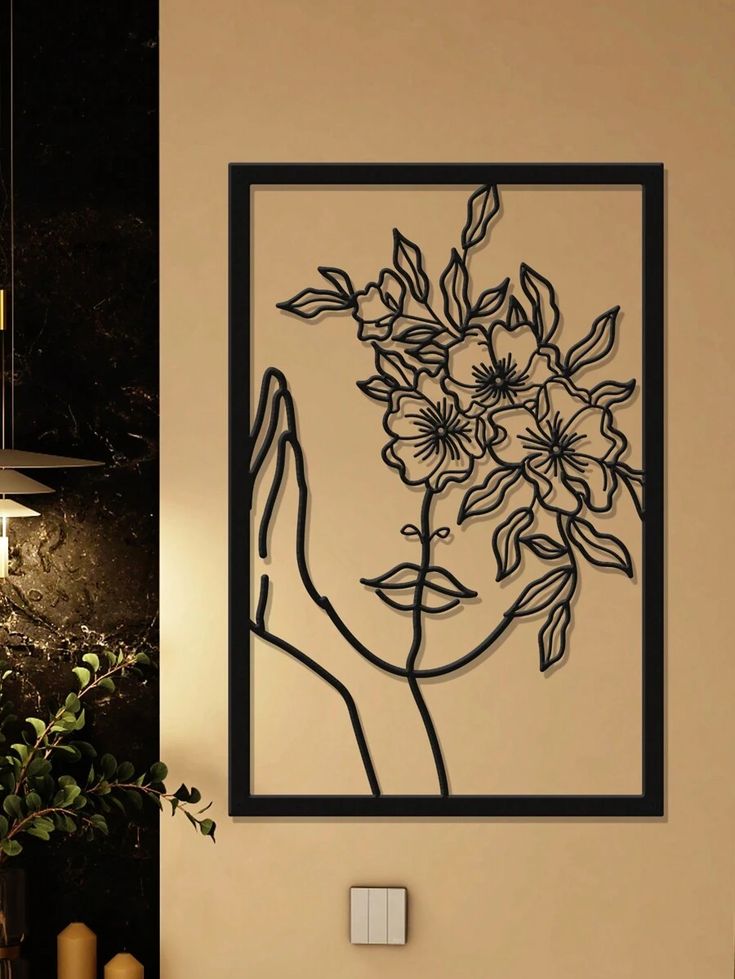 تابلو دکوراتیو دیواری طرح برگ و گل فلز مدرنT115