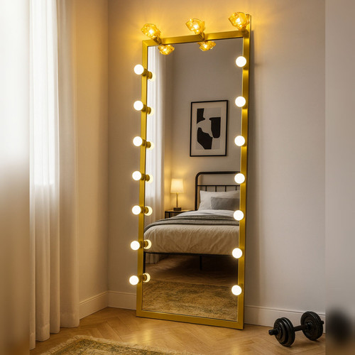 ایینه مدرن چراغدار ایستاده فلزی مناسب اتاق خواب و دکور E154