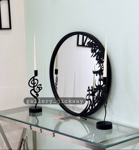 ایینه مدرن فلزی دکوراتیو خاص و جدید به همراه شمعدان
