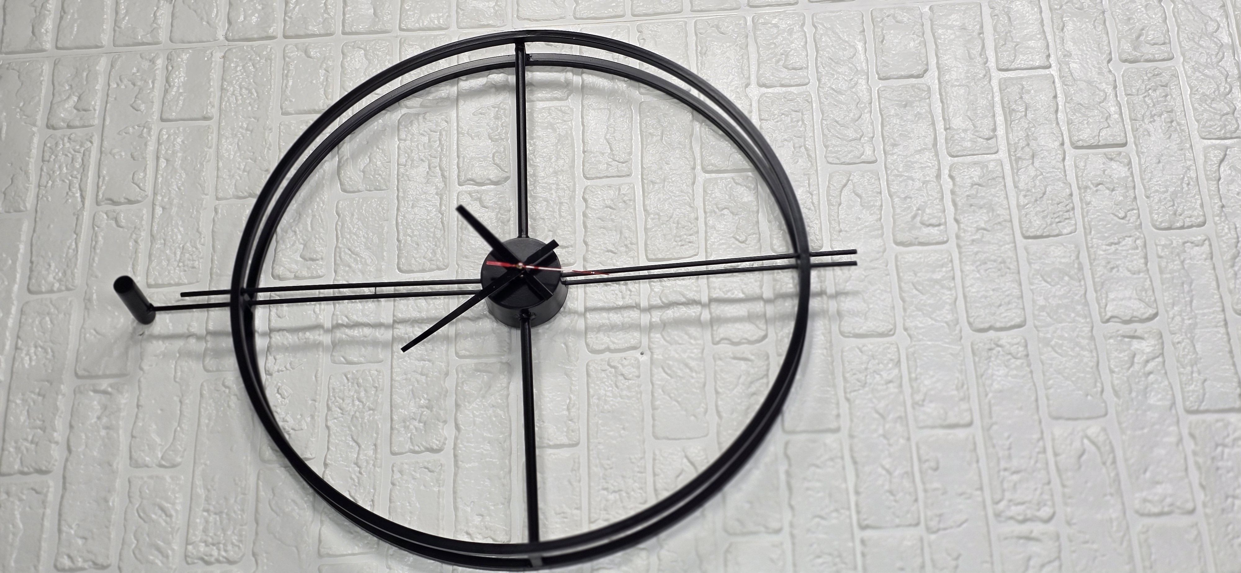 این ساعت دیواری فلزی با طراحی منحصر به فرد و مینیمالیستی خود، فراتر از یک وسیله برای نمایش زمان است؛ اثری هنری است که به دیوار شما جلوهای خاص میبخشد. ساختار دایرهای دوبل به همراه خطوط متقاطع ظریف، عمق و شخصیت بصری دلنشینی ایجاد میکند.