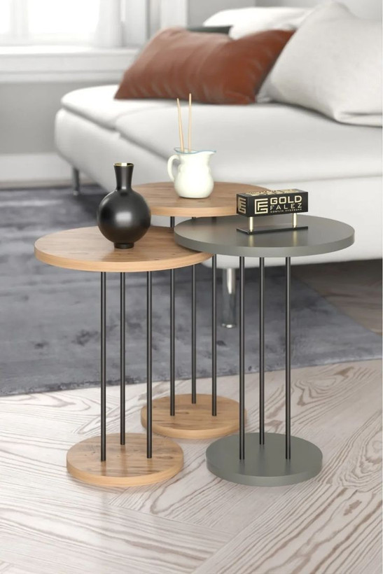 این ست میز عسلی سه تیکه (تودرتو)، با طراحی هوشمندانه و سبک مدرن، یکی از کاربردیترین المانها برای خانههای امروزی است که با اشغال کمترین فضا، بیشترین کارایی را به شما هدیه میدهد.طراحی کمجا و کاربردی (Nesting Design): این ست شامل سه میز در سایزهای مختلف است که به صورت پلهای داخل یکدیگر قرار میگیرند؛ این ویژگی باعث میشود در زمان عدم استفاده، فضای بسیار کمی از پذیرایی اشغال شود.