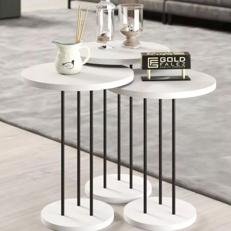 قرار دادن آباژور، گلدان یا کتابهای دکوراتیو روی طبقات پلهاتعداد: ۳ عدد میز (بزرگ، متوسط، کوچک).