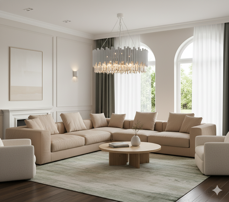 جنس بدنه فلزی با پوشش نقرهای/کرومی، حس مدرنیته و خنکی را به گرما و درخشش کریستال اضافه میکند. این لوستر نه تنها محیط شما را روشن میکند، بلکه به نقطه مرکزی دکوراسیون شما تبدیل میشود. انتخابی عالی برای کسانی که در جستجوی نهایت تجمل و درخشش در خانه خود هستند.