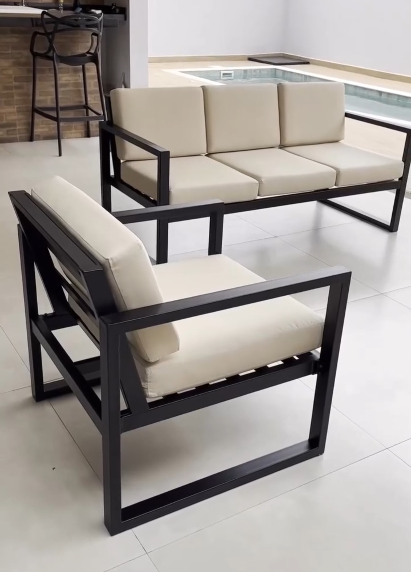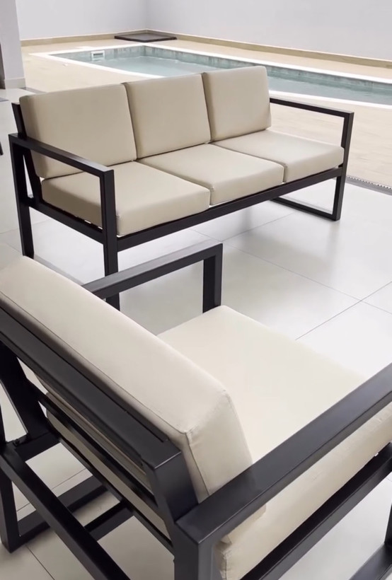 فوم اسفنجی ضخامت ۱۰ سانتی متر ۲ عدد مبل تکی ، ۱ عدد مبل دو نفره ، ۱ عدد جلو مبلی روکش از جنس پارچه مازراتی ترک اصل ،کاور زیپی قابل جداشدن و شستشو جنس جلو مبلی تمام فلز می باشد تنوع رنگ مربوط به پارچه ها می باشد(