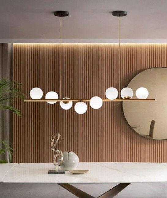 طراحی چشمنواز و مدرن، این لوستر شاخهای انتخابی بینظیر برای فضاهای لوکس و مینیمال است. بدنهی فلزی با روکش طلایی براق در ترکیب با حبابهای کروی از جنس شیشهی مات، جلوهای گرم و هنری به فضای شما میبخشد. چینش نامتقارن حبابها به سبک مدرن، حس پویایی و خلاقیت را القا میکند و در عین حال، نور یکنواخت و ملایمی را در محیط پخش مینماید.
