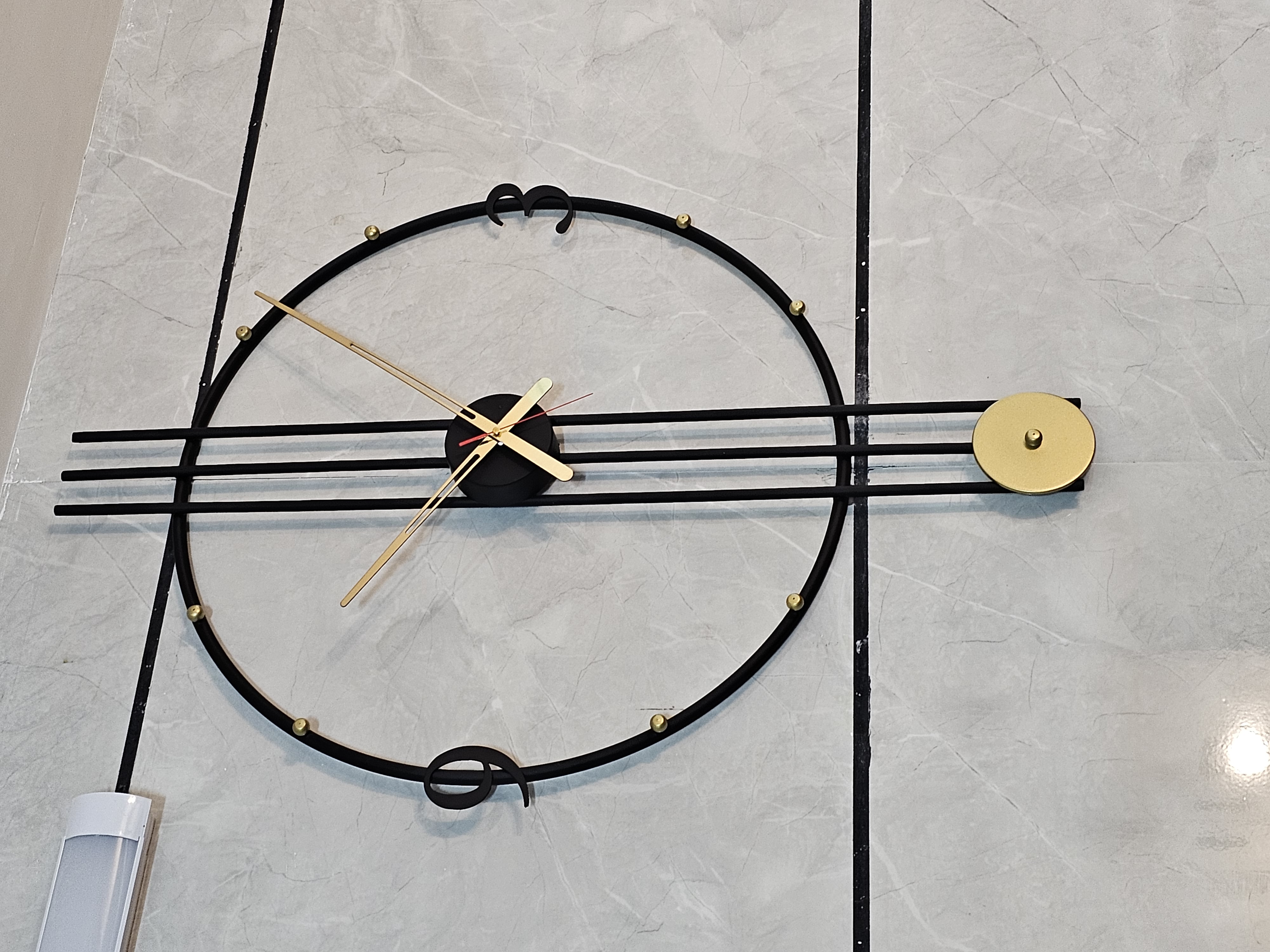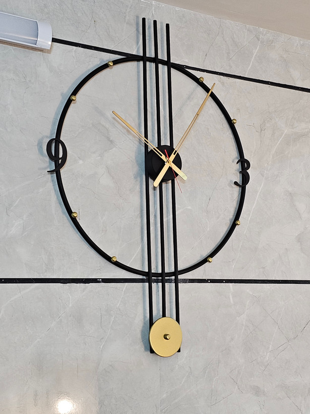 به خانهتان یک نقطه کانونی خیرهکننده اضافه کنید. این ساعت دیواری، با فریم فلزی دایرهای و خطوط عمودی مینیمال، بیانیهای هنری در طراحی داخلی است. ترکیب رنگ مشکی مات بدنه با عقربههای طلایی براق، کنتراستی شیک و امروزی ایجاد میکن