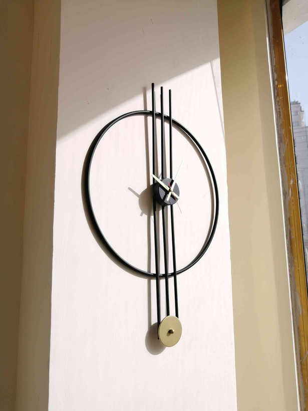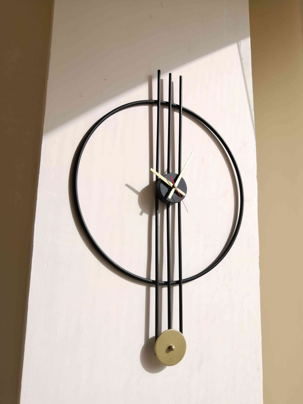 به خانهتان یک نقطه کانونی خیرهکننده اضافه کنید. این ساعت دیواری، با فریم فلزی دایرهای و خطوط عمودی مینیمال، بیانیهای هنری در طراحی داخلی است. ترکیب رنگ مشکی مات بدنه با عقربههای طلایی براق، کنتراستی شیک و امروزی ایجاد میکن