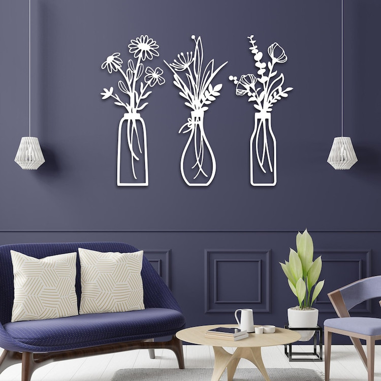 تابلو لیزری مدرن گلدان و گل های زیباT209