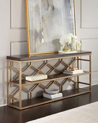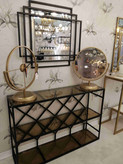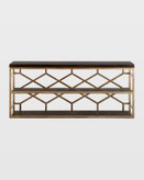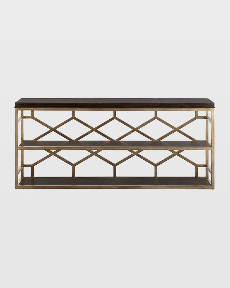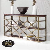 این کنسول شیک و مدرن، یک انتخاب عالی برای افزودن حس لوکس و مدرنیته به فضای پذیرایی، ورودی یا حتی اتاق کار شماست. طراحی آن ترکیبی هنرمندانه از استحکام و ظرافت است که چشم هر بینندهای را به خود جلب میکندطراحی هندسی خاص: ساختار فلزی این کنسول با طرحهای لوزی (Diamond)، جلوهای بصری فوقالعاده ایجاد کرده که آن را از سایر کنسولهای رایج متمایز میکند. این طرح مشبک، عمق و جذابیت خاصی به فضا میبخشد.