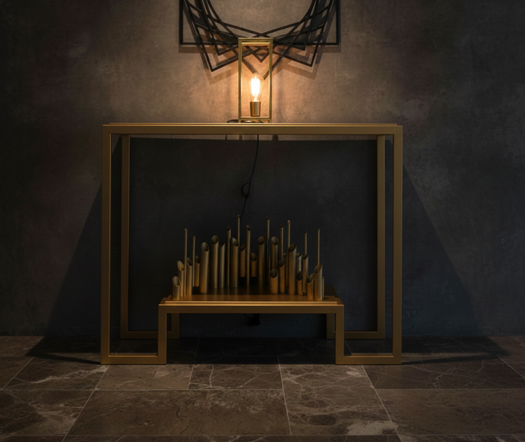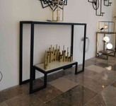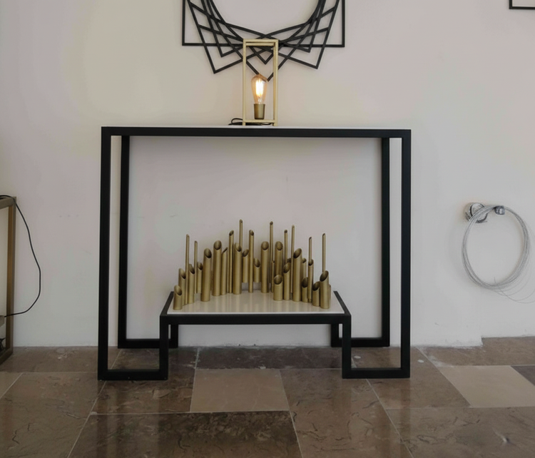 این کنسول شیک و مدرن، یک انتخاب عالی برای افزودن حس لوکس و مدرنیته به فضای پذیرایی، ورودی یا حتی اتاق کار شماست. طراحی آن ترکیبی هنرمندانه از استحکام و ظرافت است که چشم هر بینندهای را به خود جلب میکندطراحی هندسی خاص: ساختار فلزی این کنسول با طرحهای لوزی (Diamond)، جلوهای بصری فوقالعاده ایجاد کرده که آن را از سایر کنسولهای رایج متمایز میکند. این طرح مشبک، عمق و جذابیت خاصی به فضا میبخشد.