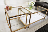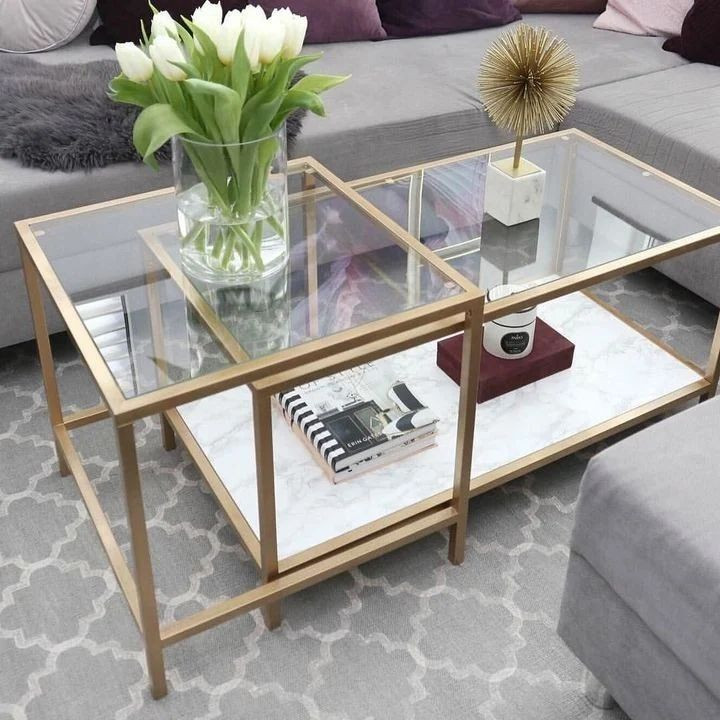 این میز کنار مبلی خاص با طراحی مدرن و هنری، ترکیبی چشمنواز از جلوهی طلایی لوکس و هندسهی خلاقانه است که در نگاه اول چشمها را خیره میکند.