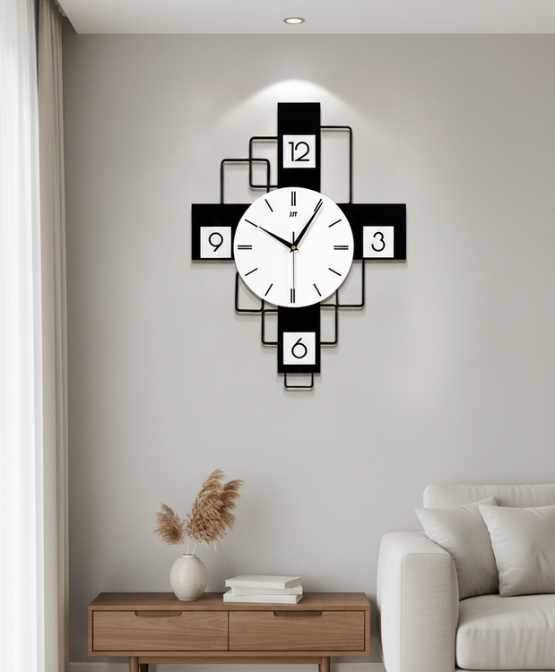 ساعت دیواری با ترکیب چوبی و ابعاد طول: 60 سانتی متر، عرض: 5 سانتی متر، ارتفاع: 60 سانتی متر. قابلیت سفارشی سازی در هر سایزی.