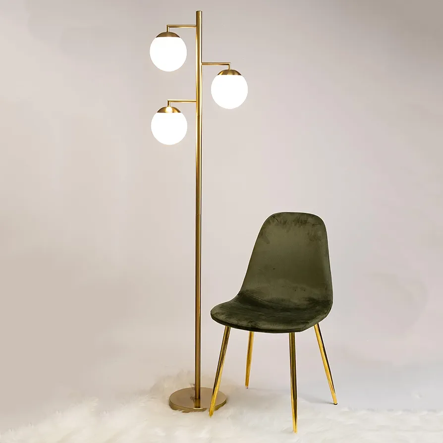آباژور ایستاده مدرن سه شعله با پایه مشکی و طلایی مات