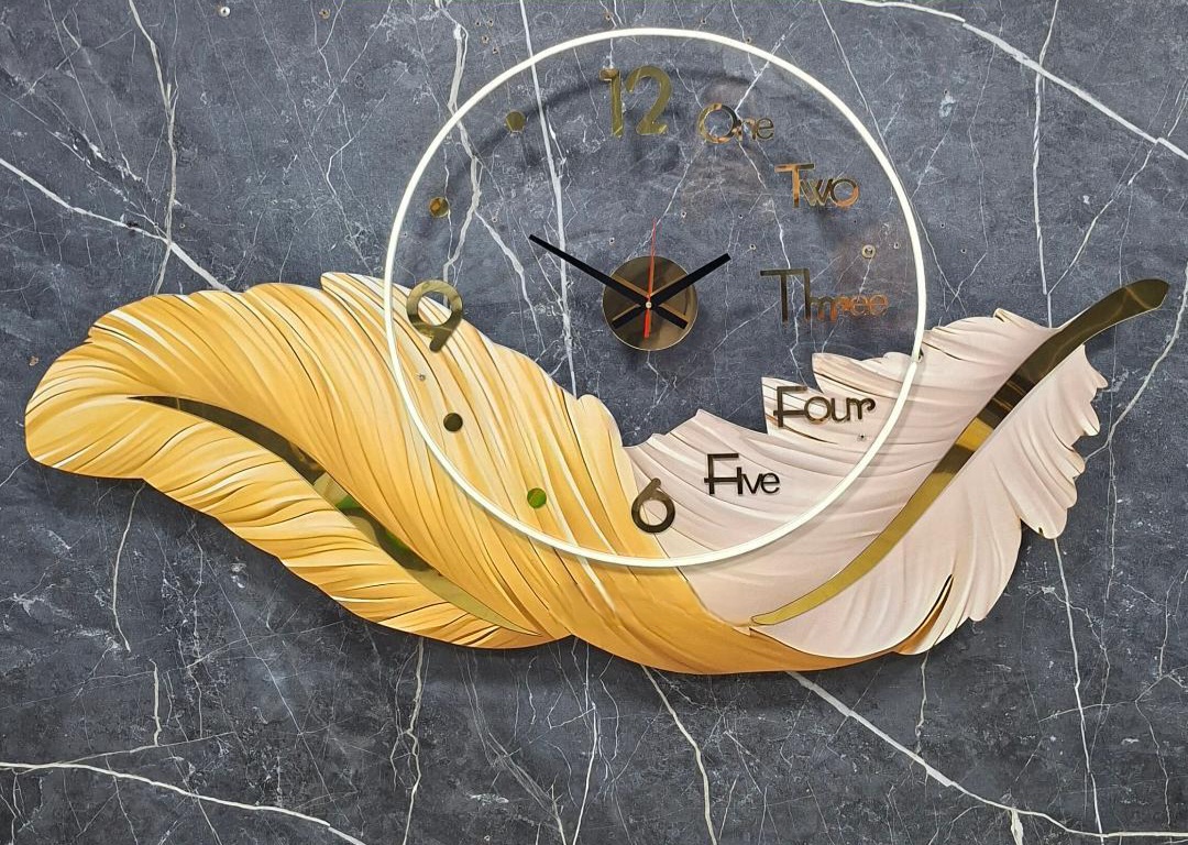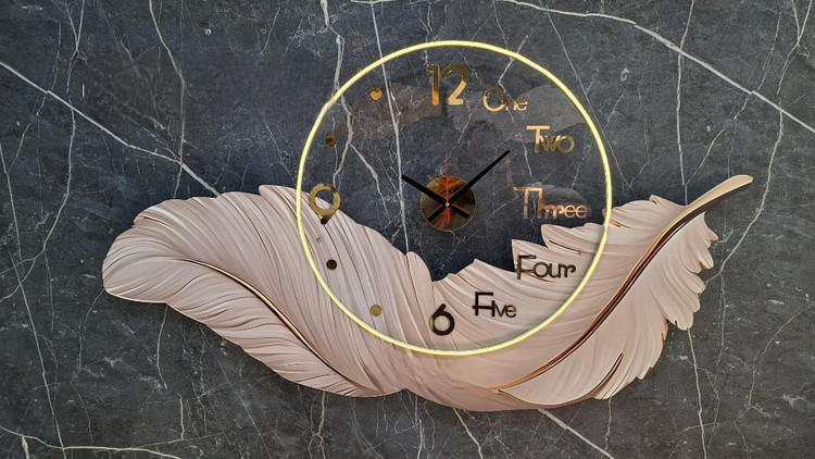 تلاقی هنر و زمان؛ ساعت دیواری طرح "پر زرین" با نورپردازی مخفی
