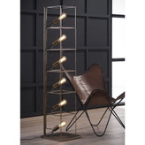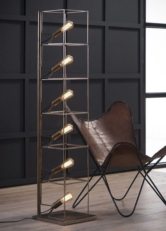 این آباژور ایستاده با طراحی ساختارشکنانه و فرم شبکهای، یکی از خاصترین مدلهای نورپردازی دکوراتیو است. قاب فلزی عمودی با تقسیمبندی مربعی، محل قرارگیری چندین لامپ ادیسونی مورب است که با پخش نور گرم و ملایم، فضای محیط را بهطرز چشمگیری زیبا و خاص میکند.