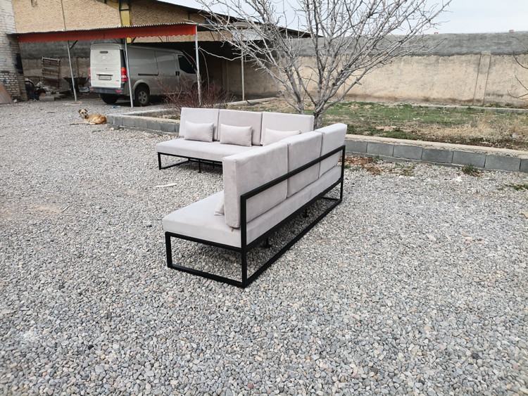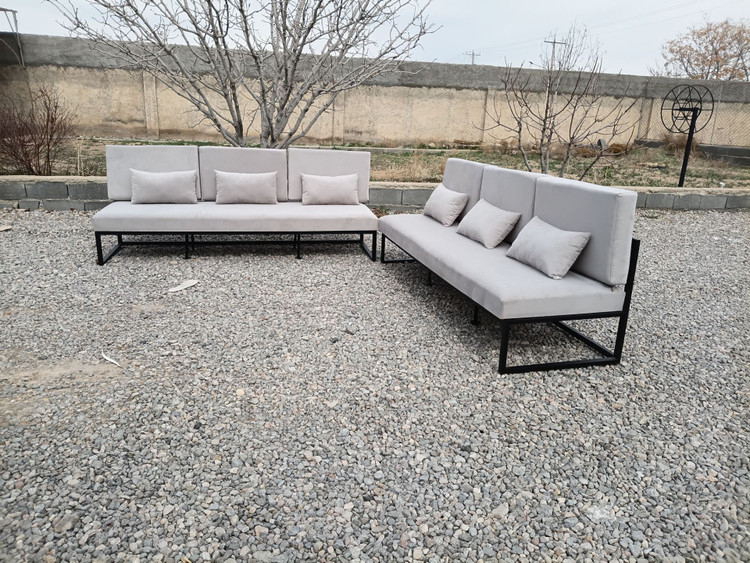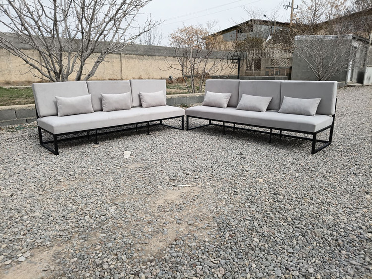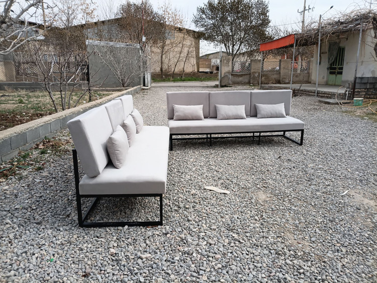 فوم اسفنجی ضخامت ۱۰ سانتی متر ۲ عدد مبل تکی ، ۱ عدد مبل دو نفره ، ۱ عدد جلو مبلی روکش از جنس پارچه مازراتی ترک اصل ،کاور زیپی قابل جداشدن و شستشو جنس جلو مبلی تمام فلز می باشد تنوع رنگ مربوط به پارچه ها می باشد(