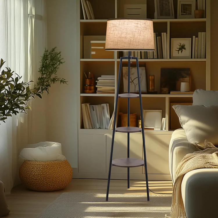 آباژور ایستاده مدرن سهطبقه فلزی با کلاهک پارچهای
