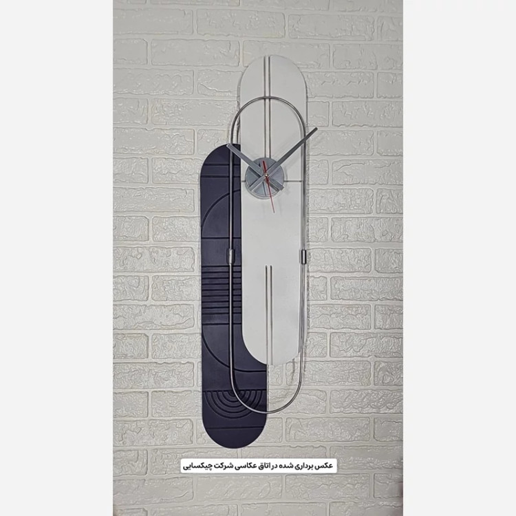 این ساعت دیواری مدرن و عمودی با طراحی خاص دو رنگ (سفید و سرمهای تیره/خاکستری) و فریم فلزی ظریف، جلوهای مینیمال و شیک به دیوار شما میبخشد. ترکیب رنگی و طراحی عمودی آن، این ساعت را به یک اثر هنری مدرن تبدیل کرده است که برای فضاهای خاص و امروزی بسیار مناسب است.