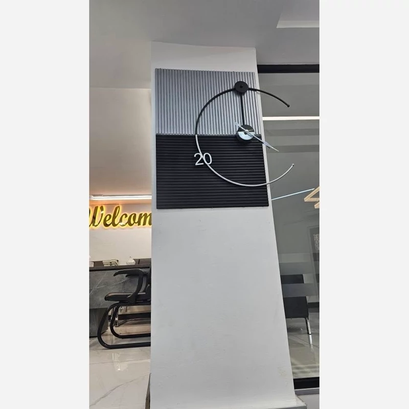 پوشش رنگ کوره استاتیک: بدنه فلزی این اثر هنری با رنگ پودری الکترواستاتیک پوشش داده شده است که کاملاً ضد خش، ضد رطوبت و دارای ثبات رنگ همطراحی دو بافته (Two-Texture): ترکیب پنلهای شیاردار خاکستری و مشکی، تداعیکننده سبکهای مدرن و صنعتی در دکوراسیون است.