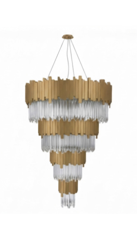 لوستر مدرن آبشاری طلایی | لوستر کریستالی لاکچری | خرید لوستر طبقاتی شیک