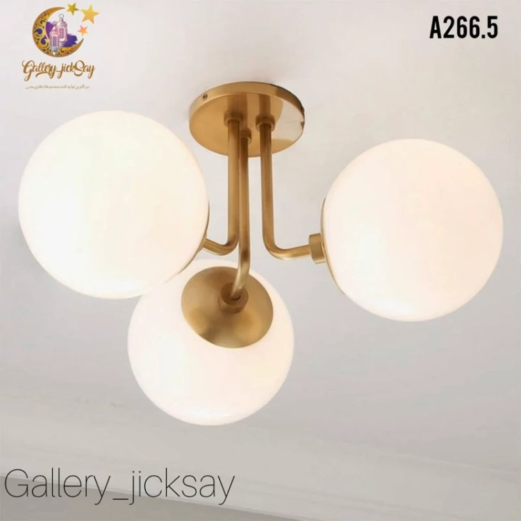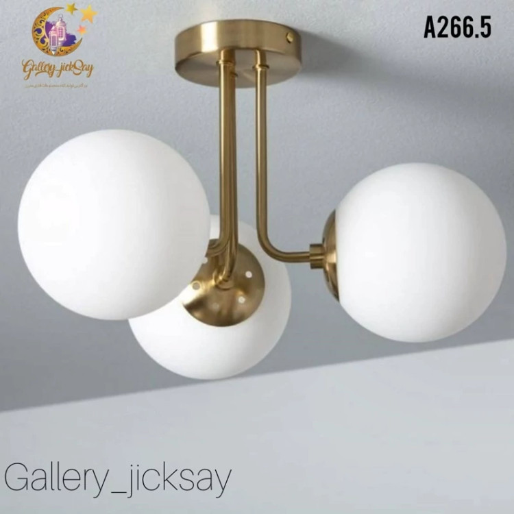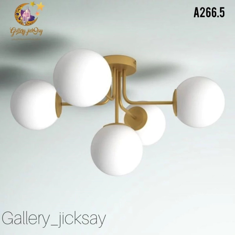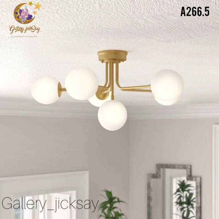 یکی از زیباترین انتخابها برای دکوراسیونهای امروزی است. بدنه فلزی با آبکاری طلایی مات در کنار حبابهای کروی که به صورت خوشهای چیده شدهاند، جلوهای مجلل و در عین حال ساده به سقف شما میبخشد.