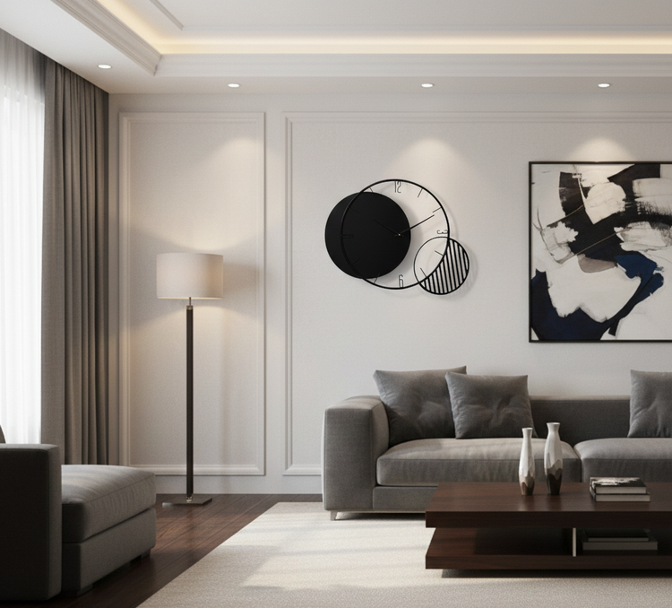 اگر به دنبال این هستید که دکوراسیون دیوارهای خود را با یک اکسسوری جسورانه و خاص متحول کنید، این ساعت با طراحی دو دایره متداخل بهترین گزینه است. ترکیب رنگ مشکی مات در کنار فریم ظریف طلایی، هارمونی بینظیری ایجاد کرده که چیدمان شما را لوکستر نشان میدهد.