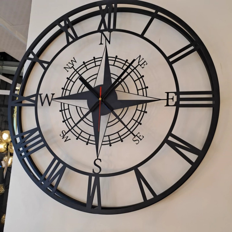 اگر دیوارهای خانه شما به یک تغییر اساسی و بااصالت نیاز دارد، این ساعت با طراحی قطبنما (Compass) فراتر از یک نمایشگر زمان عمل میکند. این مدل با اعداد رومی درشت و جزئیات دقیق جهتهای جغرافیایی، حس قدرت و اصالت را به فضای پذیرایی، اتاق کار یا راهروهای شما میبخشد.