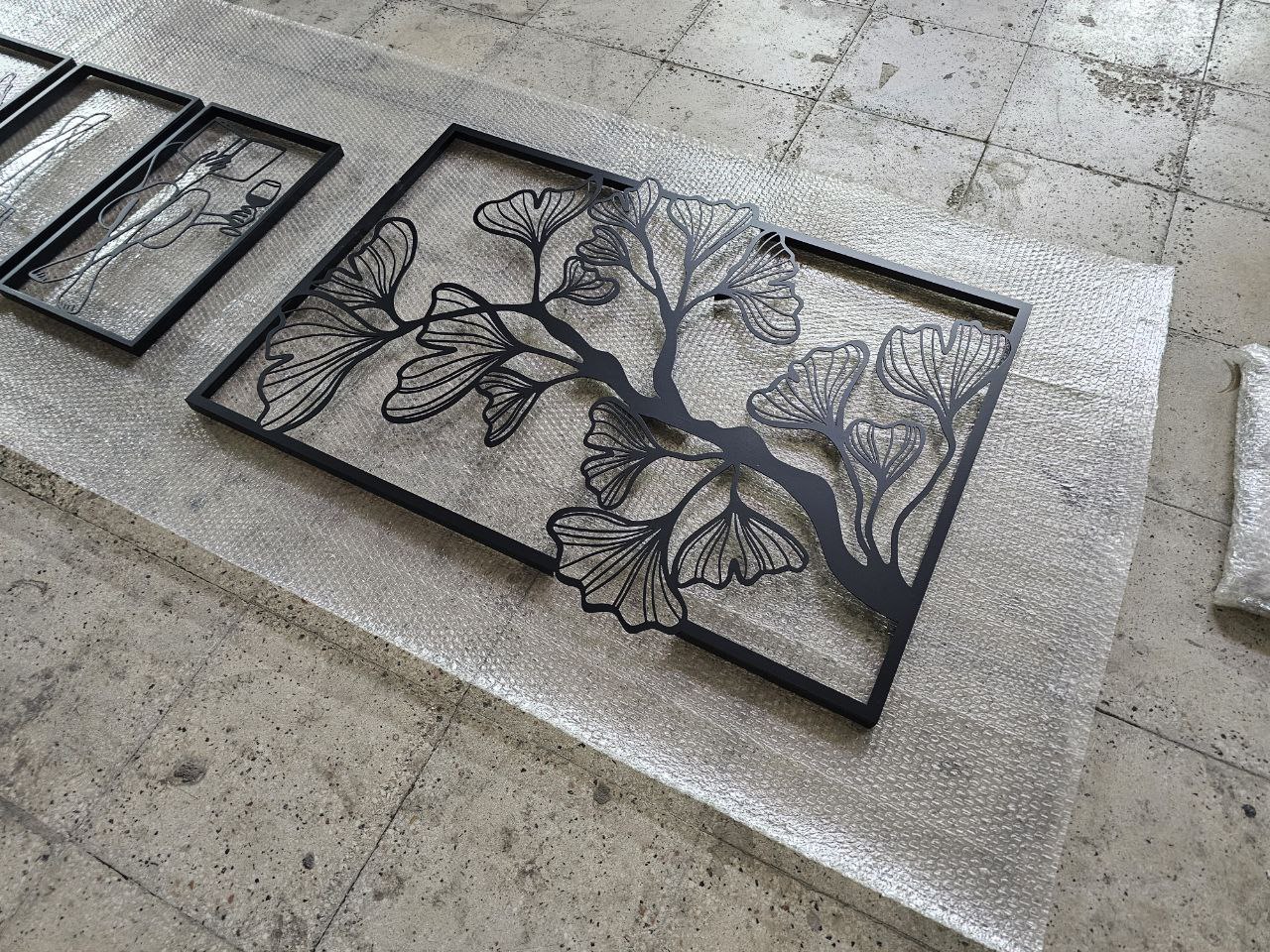 تابلوی فلزی دکوراتیو با طرح ظریف و خاص برگ ژینکو. برش دقیق، رنگ مشکی مات و کیفیت بینظیر برای دکوراسیونهای مینیمال و معاصر. 🔸 قابل سفارش در ابعاد دلخواه. 🔸