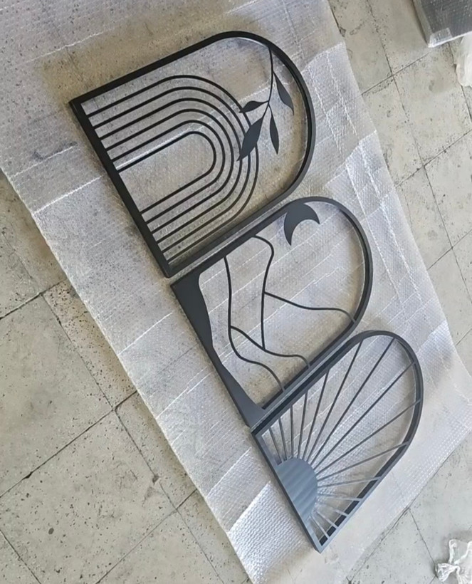 تابلوی فلزی دکوراتیو با طرح ظریف و خاص برش دقیق، رنگ مشکی مات و کیفیت بینظیر برای دکوراسیونهای مینیمال و معاصر. 🔸 قابل سفارش در ابعاد دلخواه. 🔸