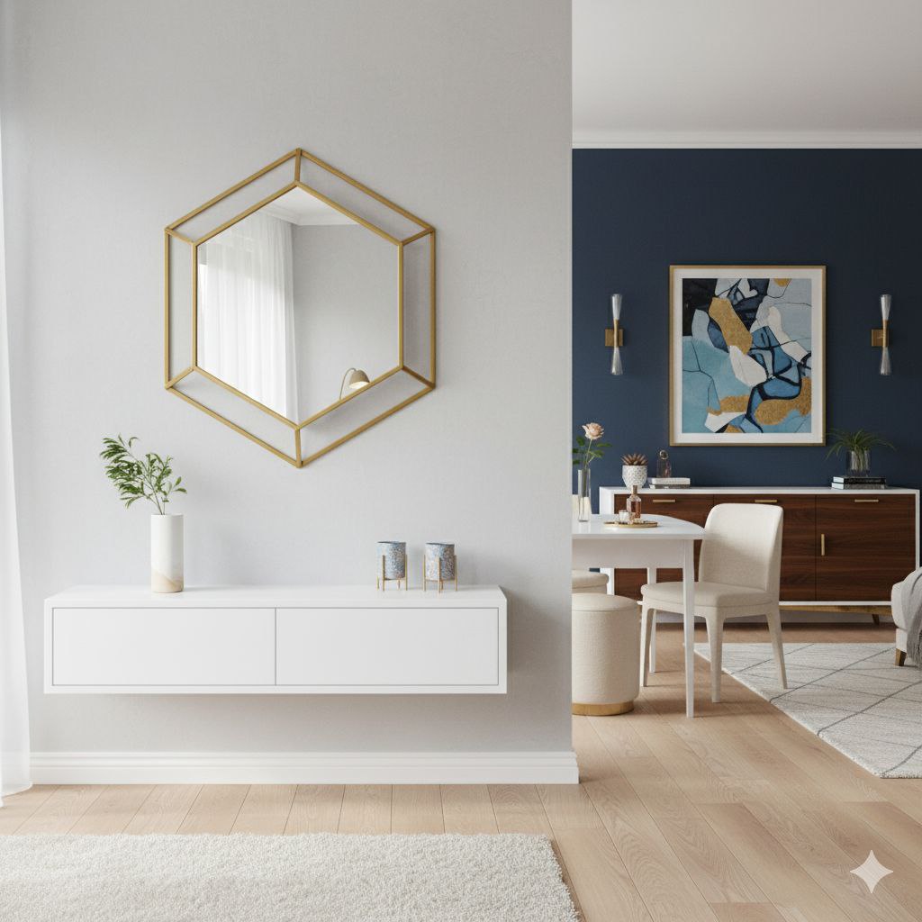 آینههای معمولی کافی نیستند! این آینه دکوراتیو با فریم طلایی شیک و هندسی، طراحی شده تا به دیوار شما عمق، درخشش و شخصیت ببخشد. از این آیتم خاص در ورودی خانه، بالای کنسول یا در اتاق خواب استفاده کنید تا نور را منعکس کند و فضای شما را بزرگتر و روشنتر از همیشه نشان دهد. یک انتخاب شیک برای کسانی که میدانند جزئیات، تفاوت میسازد