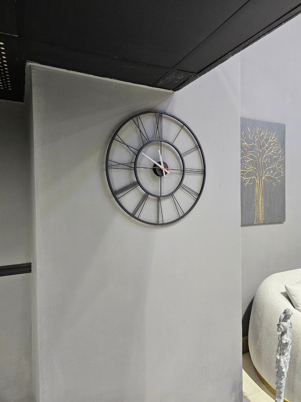 ساختار باز (Open-Face): مهمترین ویژگی این ساعت، نداشتن صفحه زمینه است. شما دیوار پشت ساعت را میبینید. این ویژگی باعث میشود که ساعت با رنگ دیوار "ادغام" شود و فضا را خفه یا شلوغ نکند.