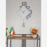 طراحی خلاقانه و دکوراتیو: برخلاف ساعتهای دایرهای کلاسیک، این مدل با ساختار شکنی در چیدمان اعداد و پاندول عدد ۶، جلوهای مدرن و مینیمال به فضای شما میدکیفیت ساخت با استانداردهای چیکسای: بدنه این محصول از متریال باکیفیت ساخته شده و با رنگ کوره استاتیک پوشش داده شده است تا در برابر خط و خش و تغییر رنگ در طول زمان کاملاً مقاوم باشد.
