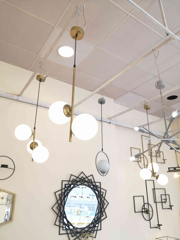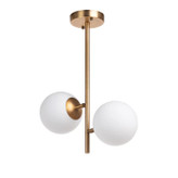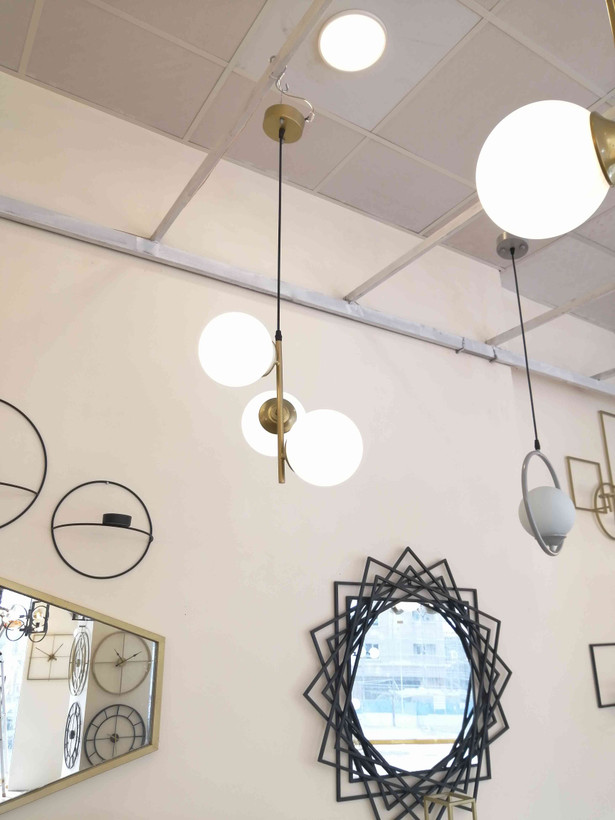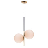 ین محصول یک آویز دکوراتیو دو شعله است که بر پایه یک میله عمودی مرکزی طراحی شده است. دو حباب کروی شیشهای در ارتفاعهای مختلف و در خلاف جهت یکدیگر روی میله نصب شدهاند که باعث ایجاد توازن بصری و زیبایی خاصی میشود.