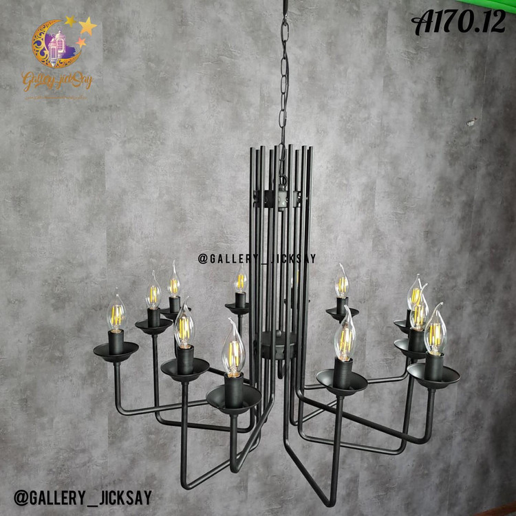 این لوستر دارای یک بدنه استوانهای مرکزی است که از میلههای فلزی موازی تشکیل شده است (این بخش شبیه به یک ستون تنه درخت یا یک قفس طراحی شده). از این بخش مرکزی، ۸ شاخه افقی و زاویهدار خارج شده که هر شاخه محل قرارگیری یک لامپ شمعی است