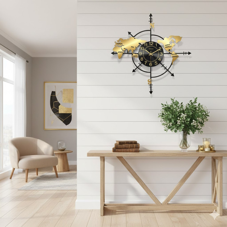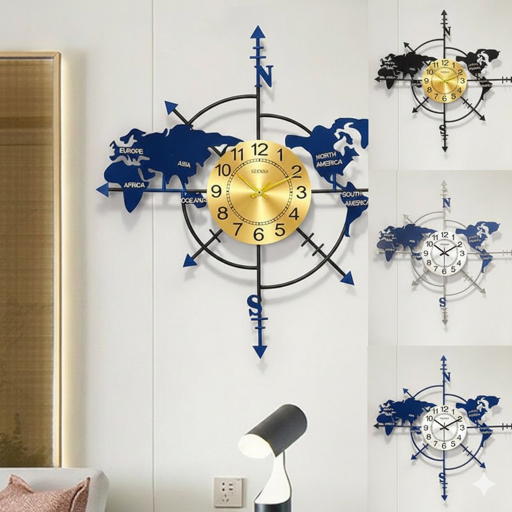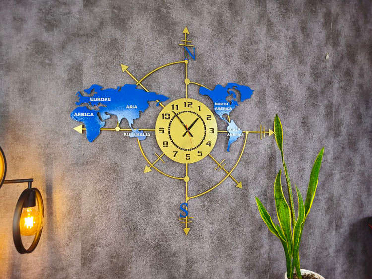 ساعت دیواری طرح نقشه جهان؛ تلاقی هنر و جغرافیا در دکوراسیون شما