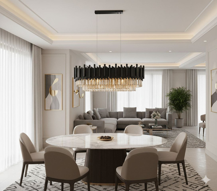 این لوستر فقط یک منبع نور نیست، بلکه یک اثر هنری جواهرنشان است. لوستری که با الهام از معماری باشکوه آرت دکو، شکوه فلز صیقلی را با درخشش منشورهای کریستالی ترکیب کرده است.