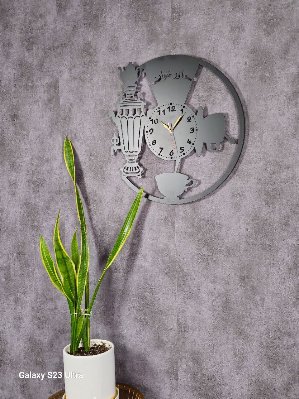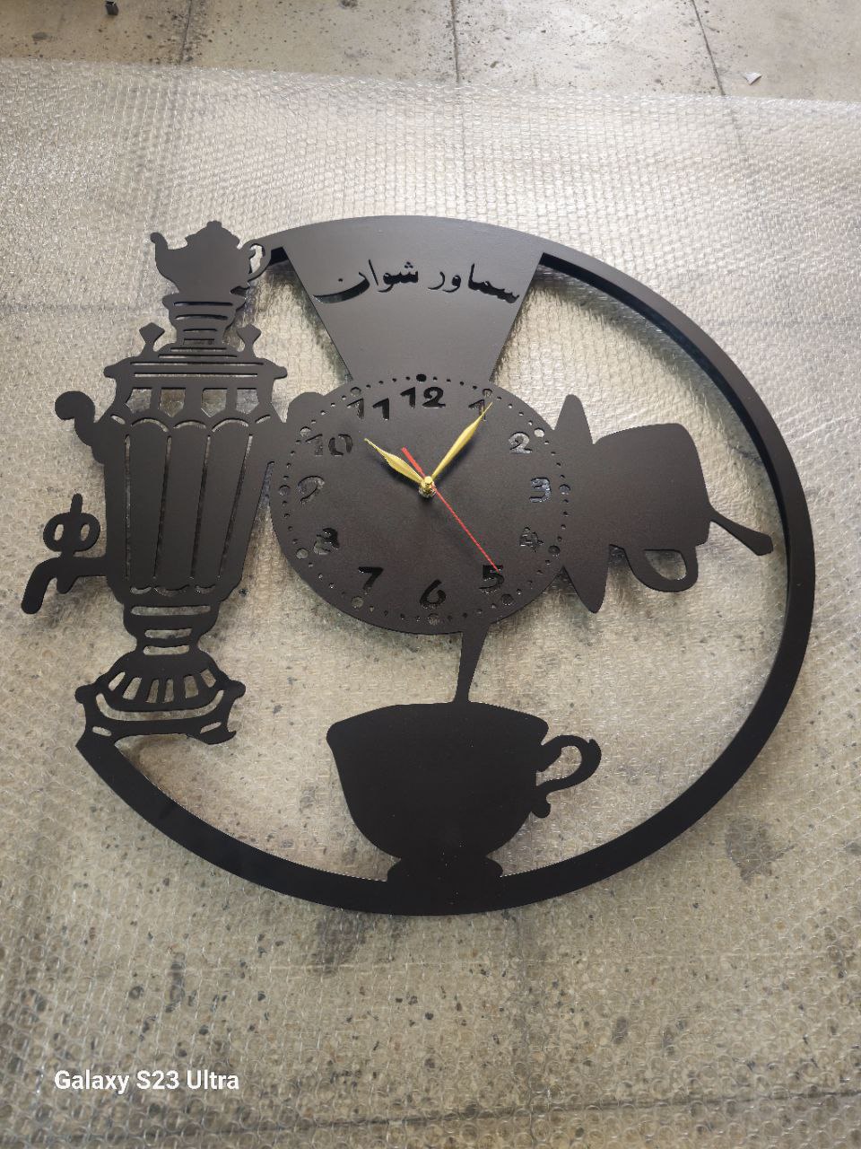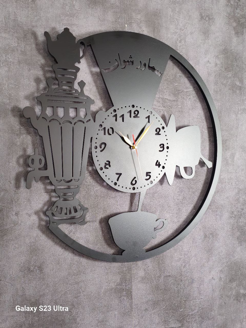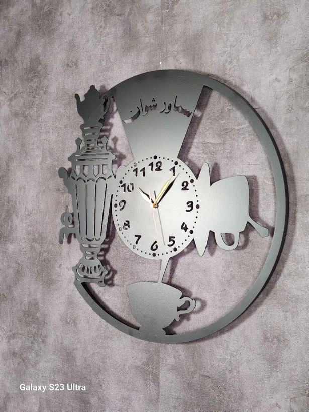 بعضی طرحها فراتر از یک ساعت هستند؛ آنها قصهای از صمیمیت و خاطرات خوش خانه پدربزرگ و مادربزرگ را روایت میکنند. این ساعت دیواری با تلفیق هنر مدرن و نمادهای سنتی مثل سماور و استکان، گرمای خاصی به آشپزخانه یا پذیرایی شما میبخشد.