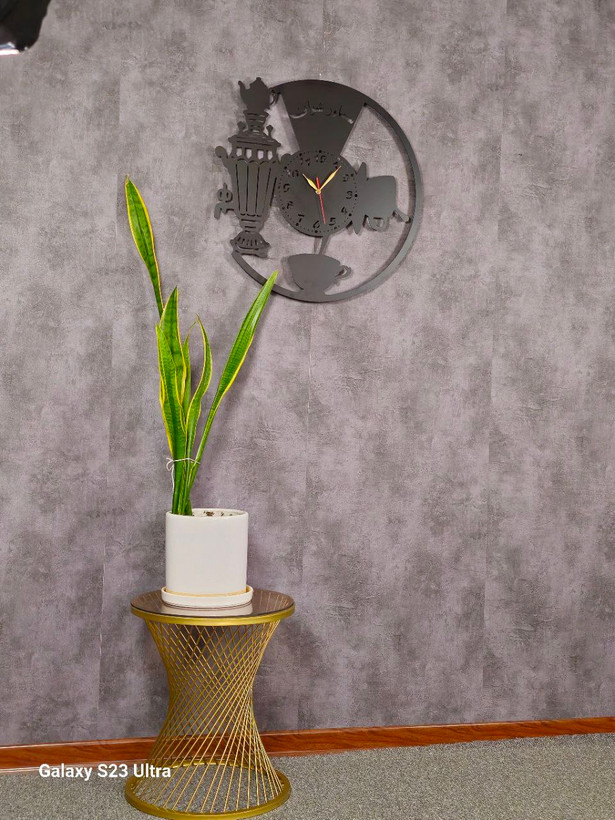 💎 چرا این ساعت یک انتخاب دکوراتیو منحصربهفرد اطراحی مفهومی: استفاده از المان سماور، قوری و فنجان در یک قاب دایرهای که نشاندهنده جریان زندگی و دورهمیهای دوستانه است.