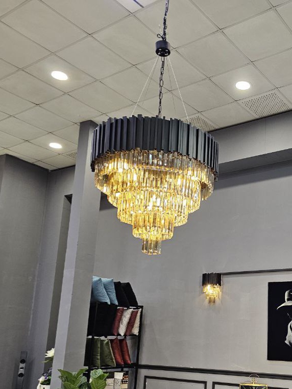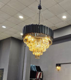 در زیر این موج طلایی، ریزش منشورهای کریستالی، نور را صدها برابر کرده و درخشش فوقالعادهای در فضا ایجاد میکند. این یک انتخاب بینظیر برای خانههایی است که دکوراسیونی مجلل، نئوکلاسیک یا مدرن گلمور دارند و میخواهند نقطه مرکزی اتاق کاملاً درخشان باشد.