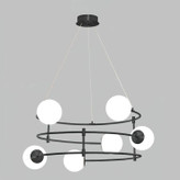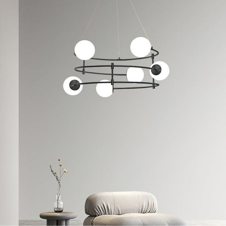 طراحی طبقاتی: ساختار دو طبقه این لوستر باعث میشود تا نور در سطوح مختلف پخش شده و فضا را بزرگتر و پرابهتتر نشانکنتراست رنگی جذاب: ترکیب بدنه مشکی مات با حبابهای شیشهای سفید مات، تضادی مدرن ایجاد میکند که با اکثر پالتهای رنگی دکوراسیون امروزی سازگار است.