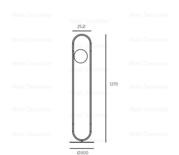 آباژور ایستاده فلزی مدرن بیضی تک حبابابعاد قطر کلی با پایه 30 سانتیمتر و ارتفاع 130 سانتیمتر