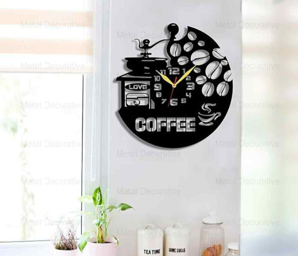 ساعت دیواری فلزی طرح کافی شاپ و دانه قهوهH605