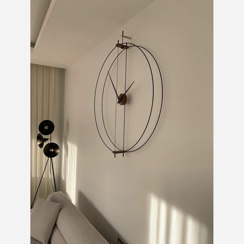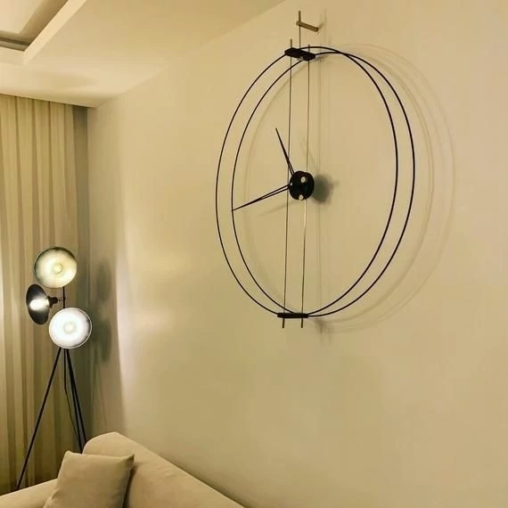 این ساعت دیواری فلزی با طراحی منحصر به فرد و مینیمالیستی خود، فراتر از یک وسیله برای نمایش زمان است؛ اثری هنری است که به دیوار شما جلوهای خاص میبخشد. ساختار دایرهای دوبل به همراه خطوط متقاطع ظریف، عمق و شخصیت بصری دلنشینی ایجاد میکند.
