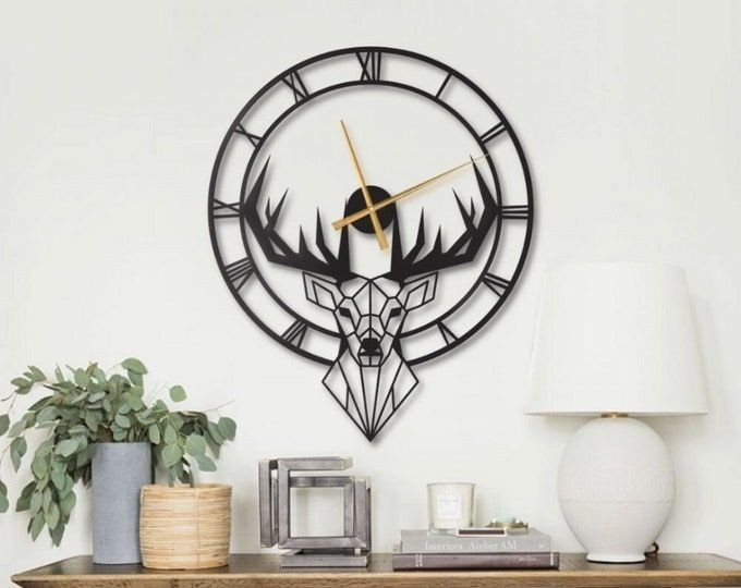 ساعت دیواری مدرن طرح گوزن فلزی H296