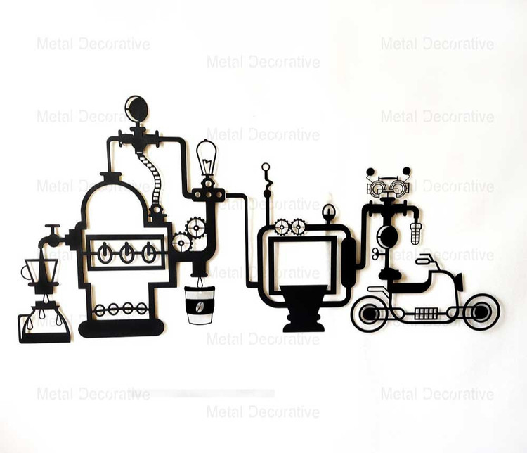 تابلو دکوراتیو کافی شاپمناسب برای استفاده در دکوراسیون داخلی کافی شاپ و رستوران و کافه می باشد. این تابلو ها از ورق فلزی و توسط دستگاه برش لیزر تولید شده و سپس در کوره های رنگ با انواع رنگ های مشکی ، سفید و طلایی قابل تولید هستند . نصب این تابلو بسیار آسان می باشد و به راحتی با استفاده از دو عدد پیچ و رولپلاک سایز متوسط می توانید روی دیوار نصب کنید
