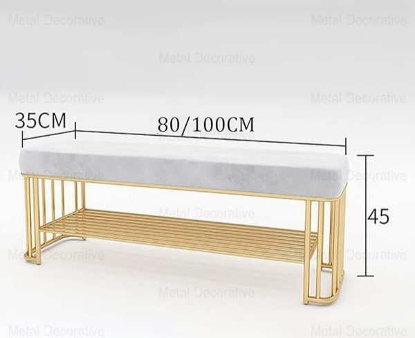 جاکفشی نشیمن دار دوطبقه یکی از محصولات جدید تولیدی متال دکوراتیو است. ابعاد این محصول در 3 سایز مختلف قابل تولید است، طول 60 یا 80 یا 100 سانتیمتر با عمق 35 و ارتفاع نشیمن 45 سانتیمتر.