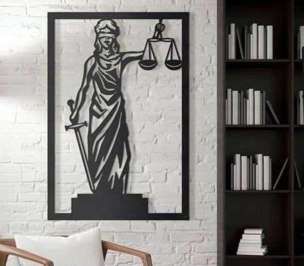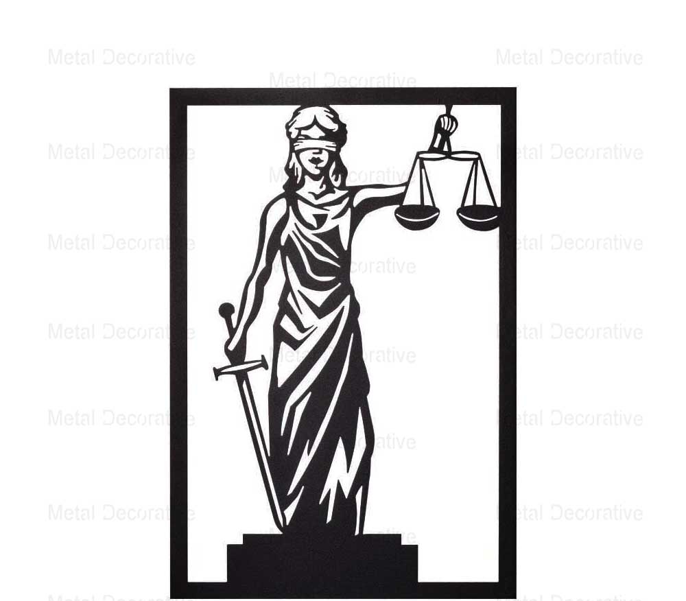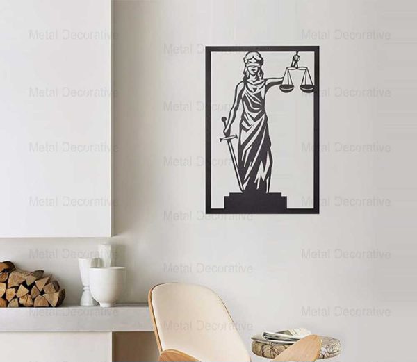 دیوارکوب فلزی الهه عدالت برای دفتر وکالت یا محیط مسکونی می باشد. این تابلو ها از ورق فلزی و توسط دستگاه برش لیزر تولید شده و سپس در کوره های رنگ با انواع رنگ های مشکی ، سفید و طلایی قابل تولید هستند . نصب این تابلو بسیار آسان می باشد و به راحتی با استفاده از دو عدد پیچ و رولپلاک سایز متوسط می توانید روی دیوار نصب کنید .