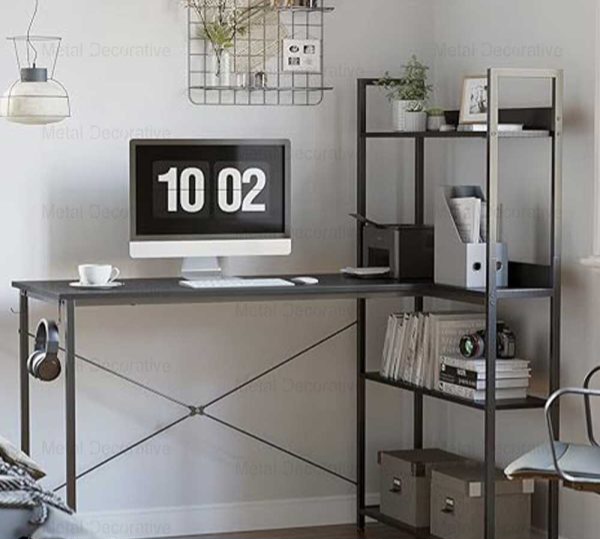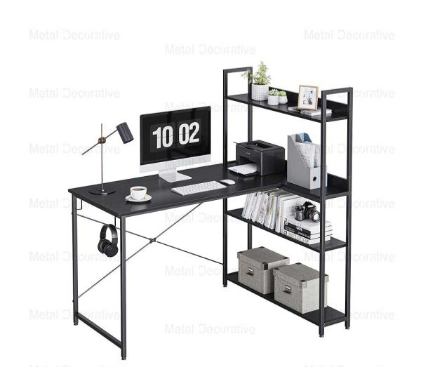 میز تحریر پایه فلزی با کتابخانه 4 طبقه