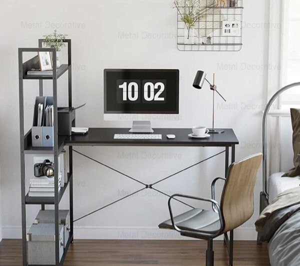 میز تحریر پایه فلزی با کتابخانه 4 طبقه